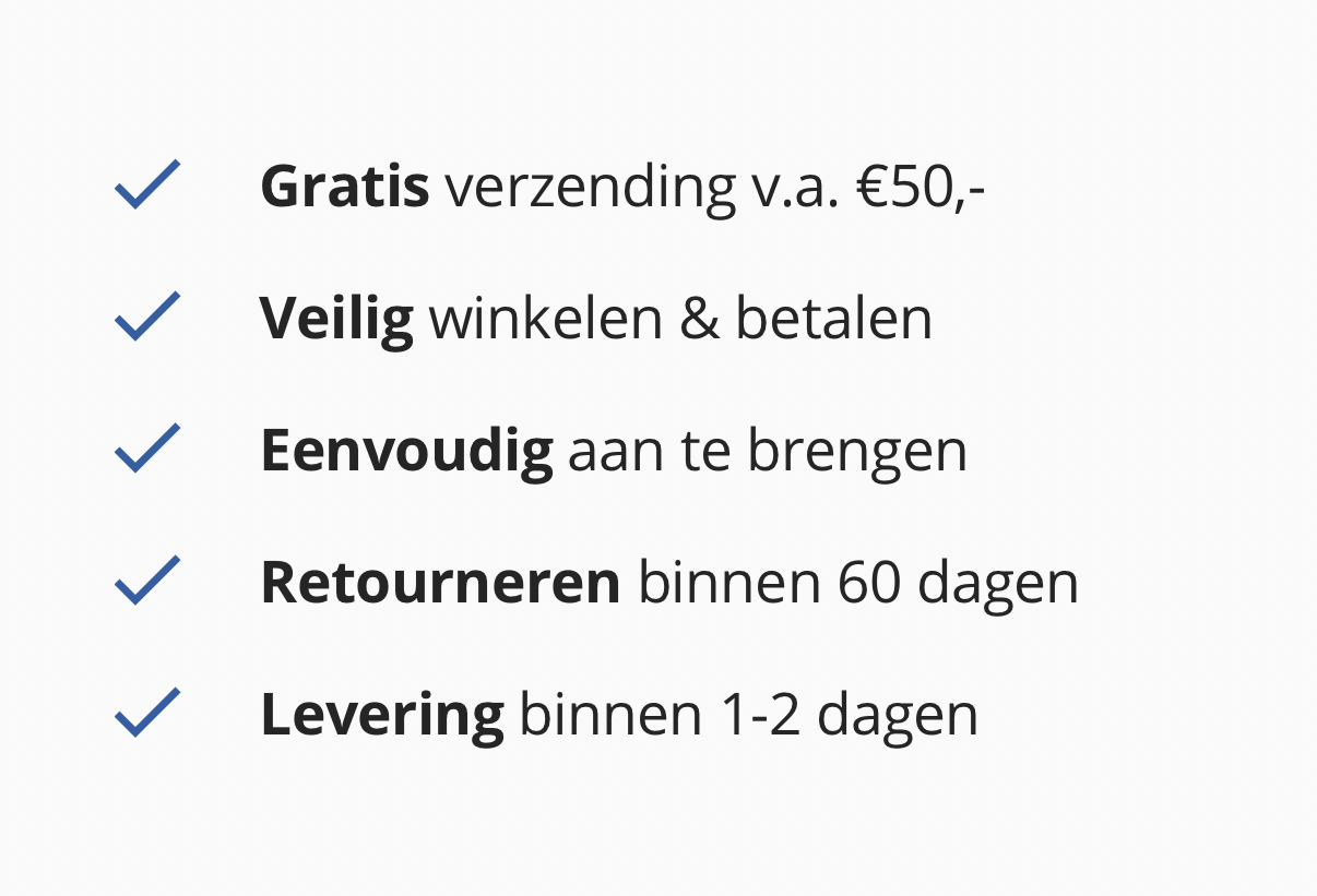 - Eenvoudig zelf aan te brengen – zonder lijm, boren of gereedschap